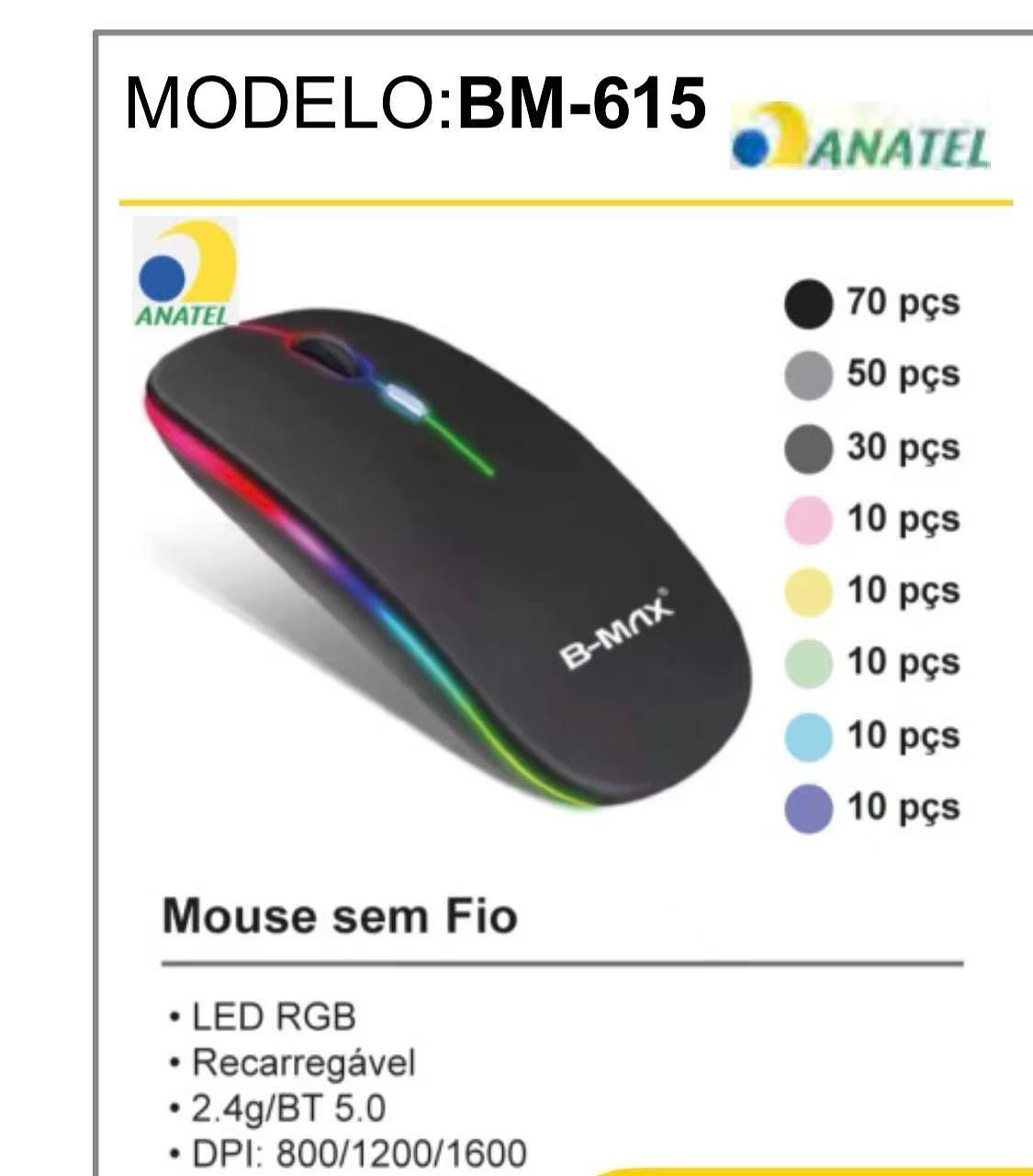 Mouse Luminoso sem fio led